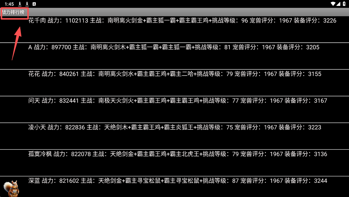 2、查看“战力排行榜”,了解当前玩家排名和战力情况。