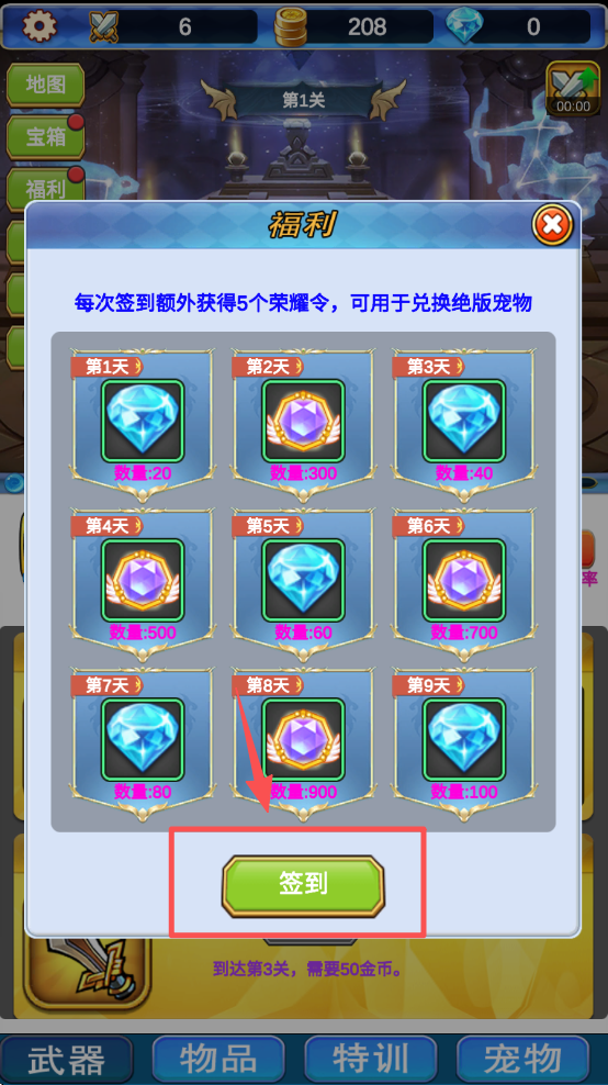 2、丰富的装备与道具系统,涵盖各类武器、防具与饰品,玩家可通过挂机与挑战持续解锁并自由搭配。