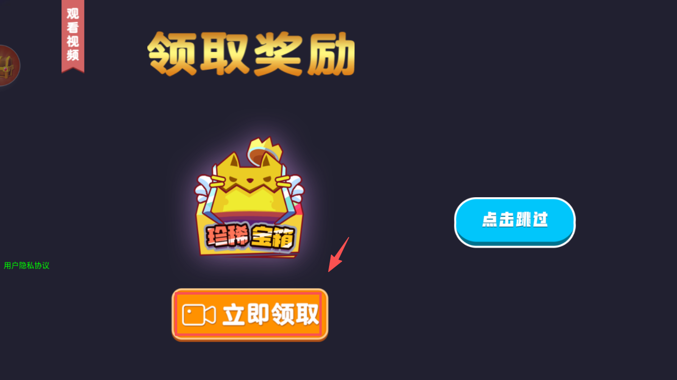 3、然后,在奖励界面点击“立即领取”按钮,获取宝箱中的珍稀奖励。