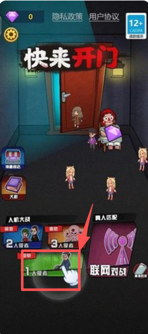 1、首先,点击“1人惊喜”按钮,选择游戏模式,开始你的游戏之旅。