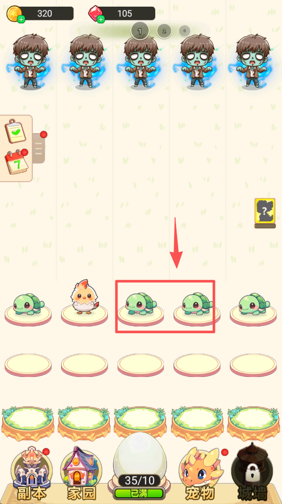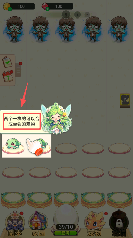 2、将两个相同的宠物拖动合并,可以合成更强大的宠物,提升战斗力。