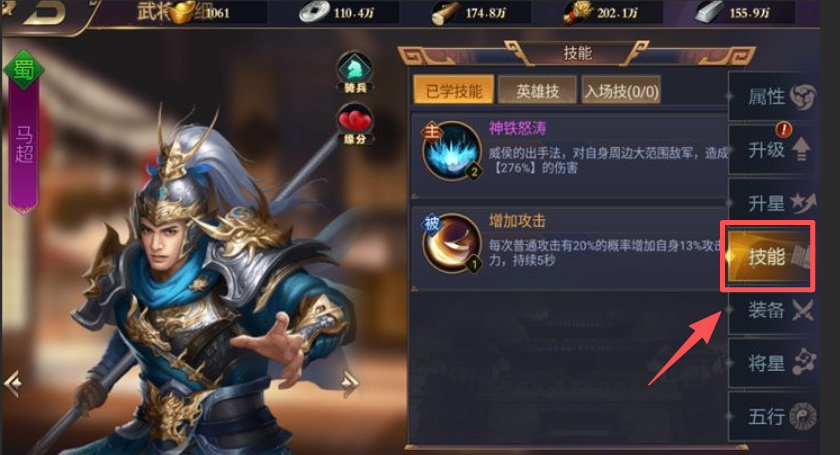 4、点击技能标签,查看并升级武将技能,为战斗增添胜算。