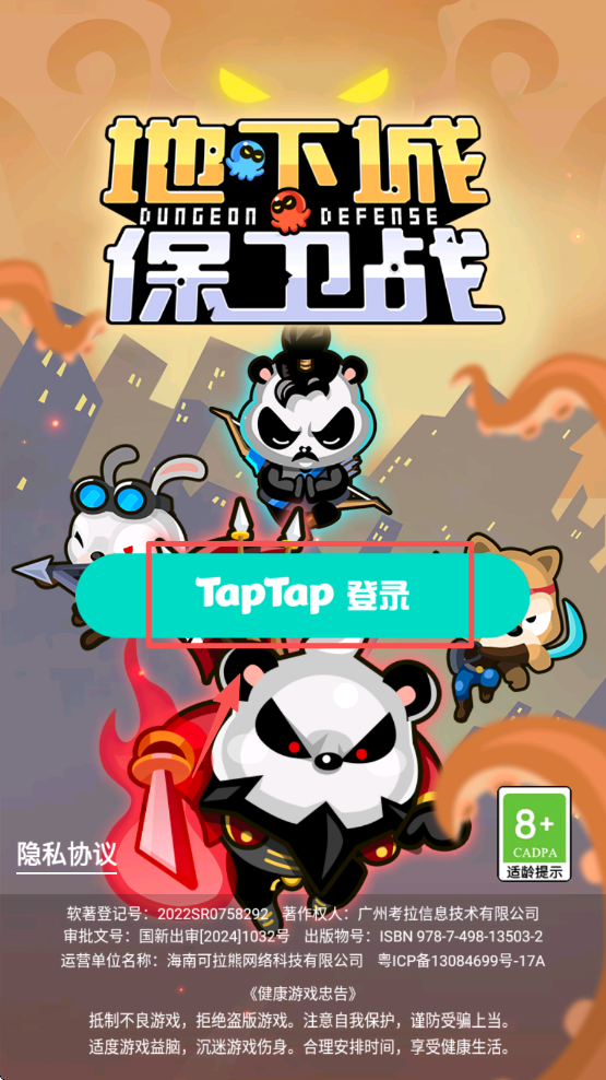 1、点击“TapTap 登录”按钮,使用TapTap账号登录游戏,开始你的冒险之旅。