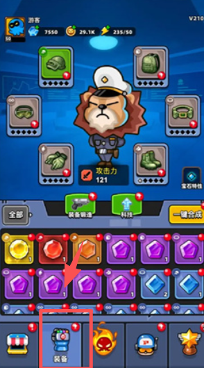 2、在主界面点击“装备”按钮,查看并装备你的防御单位,为战斗做好准备。