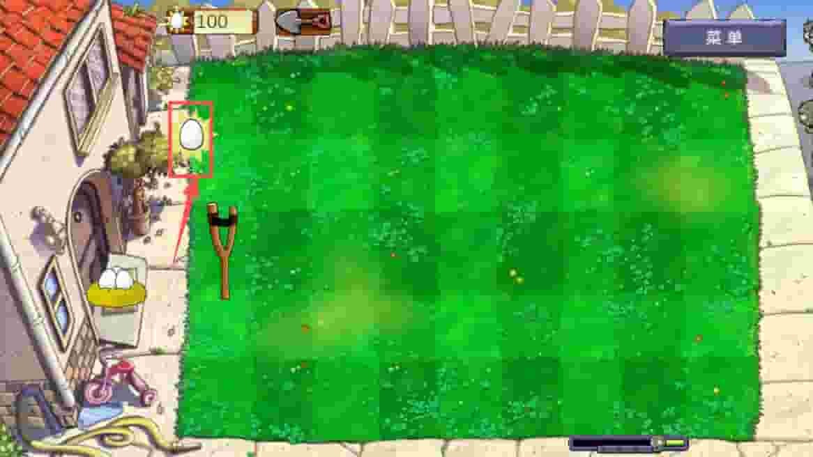 3、点击发光的蛋,将其放置到弹弓旁,生成可发射的小鸟。