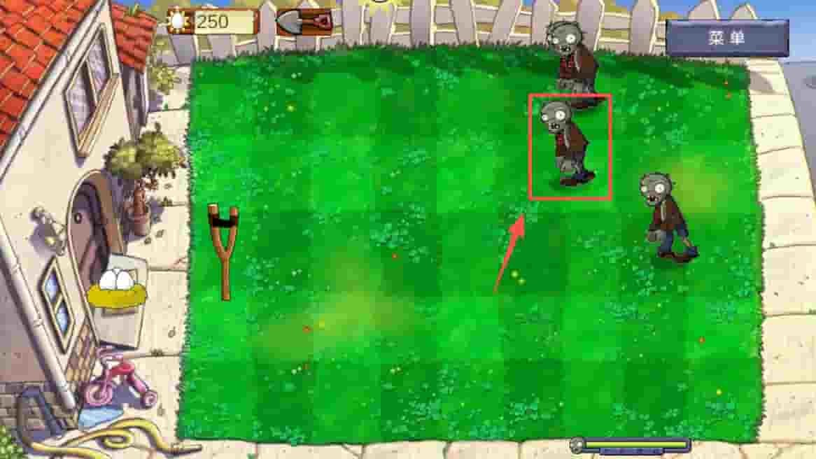 4、用弹弓发射小鸟,瞄准并攻击靠近的僵尸,阻止其前进。