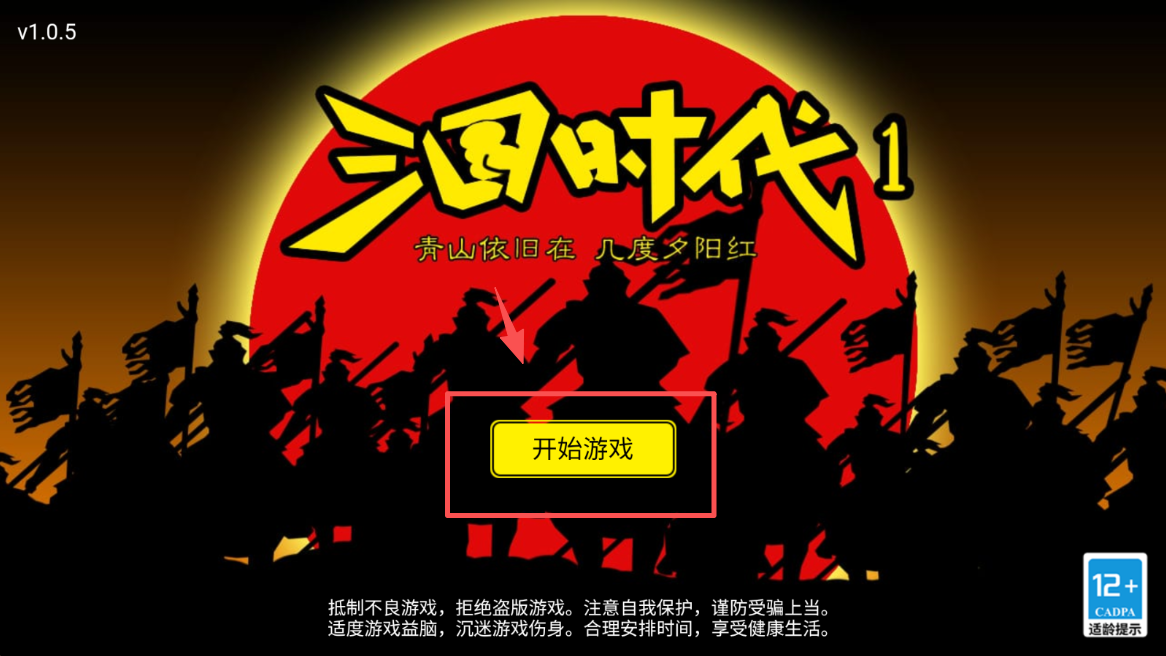 1、点击主界面的“开始游戏”按钮,进入游戏,开始你的三国时代之旅。