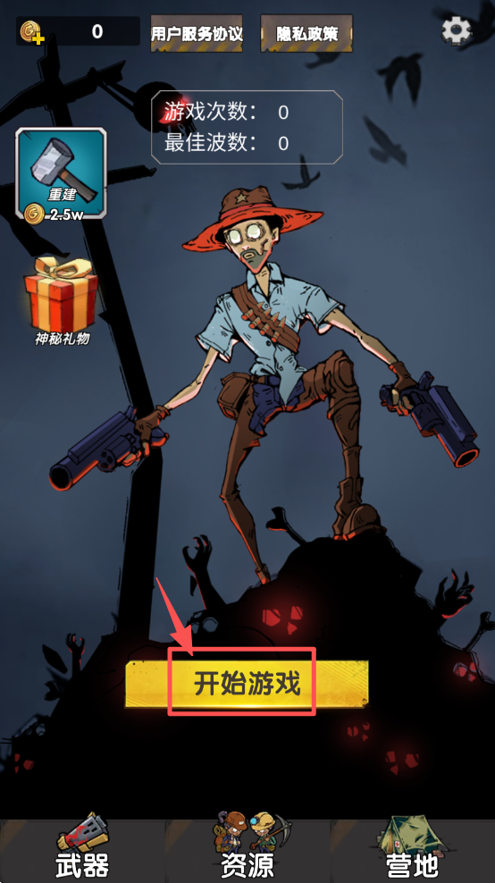 1、点击“开始游戏”按钮,进入游戏主界面,准备开始你的生存挑战。