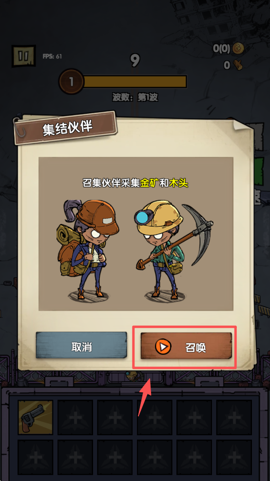 2、在游戏界面中点击“召唤”按钮,召集伙伴帮助你收集资源和战斗。