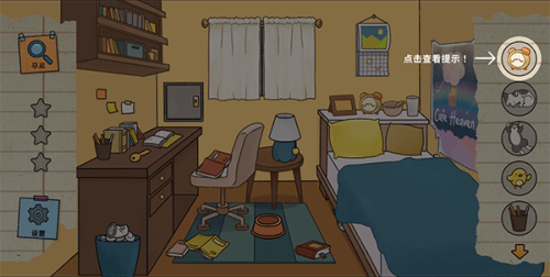2、在房间内,点击右上角的提示按钮,获取寻找线索的提示。