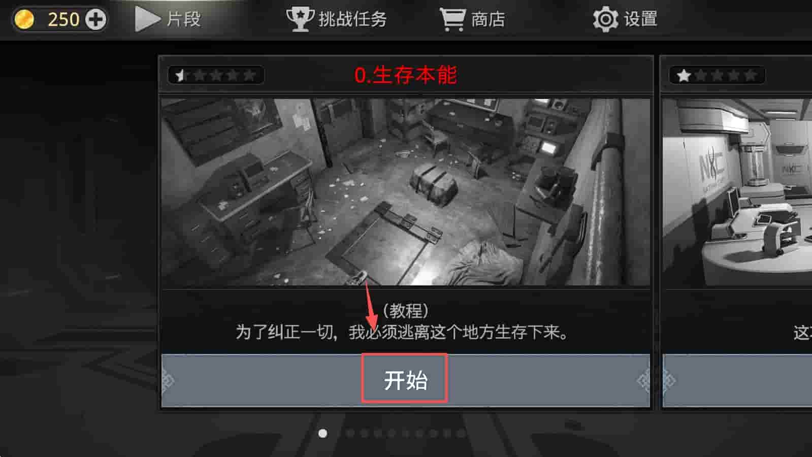 2、接着,选择“开始”按钮来启动教程关卡,学习游戏基本操作。