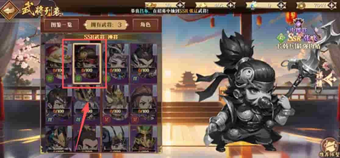 4、在武将列表中选择你喜欢的角色,开始收集和培养你的武将。