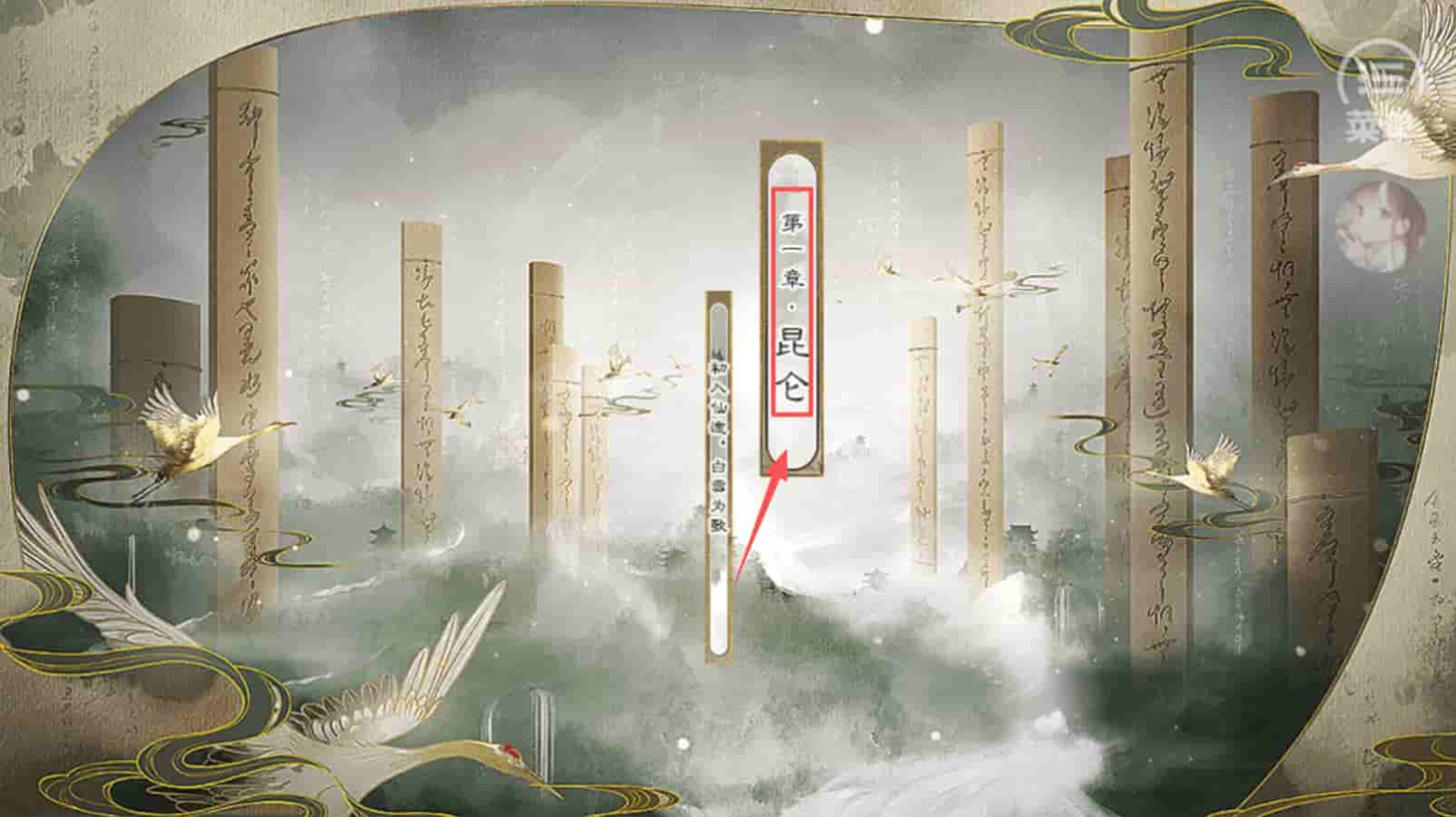 3、点击“第一章·昆仑”等章节选项,选择你想要开始的章节或故事线。