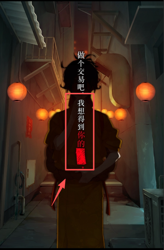 3、查看标红的对话 “做个交易吧,我想得到你的”,获取推进剧情的关键交互提示。
