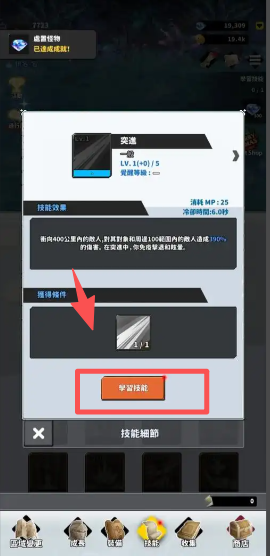 2、接着,当角色升级时,点击技能图标学习新技能,增强战斗能力。