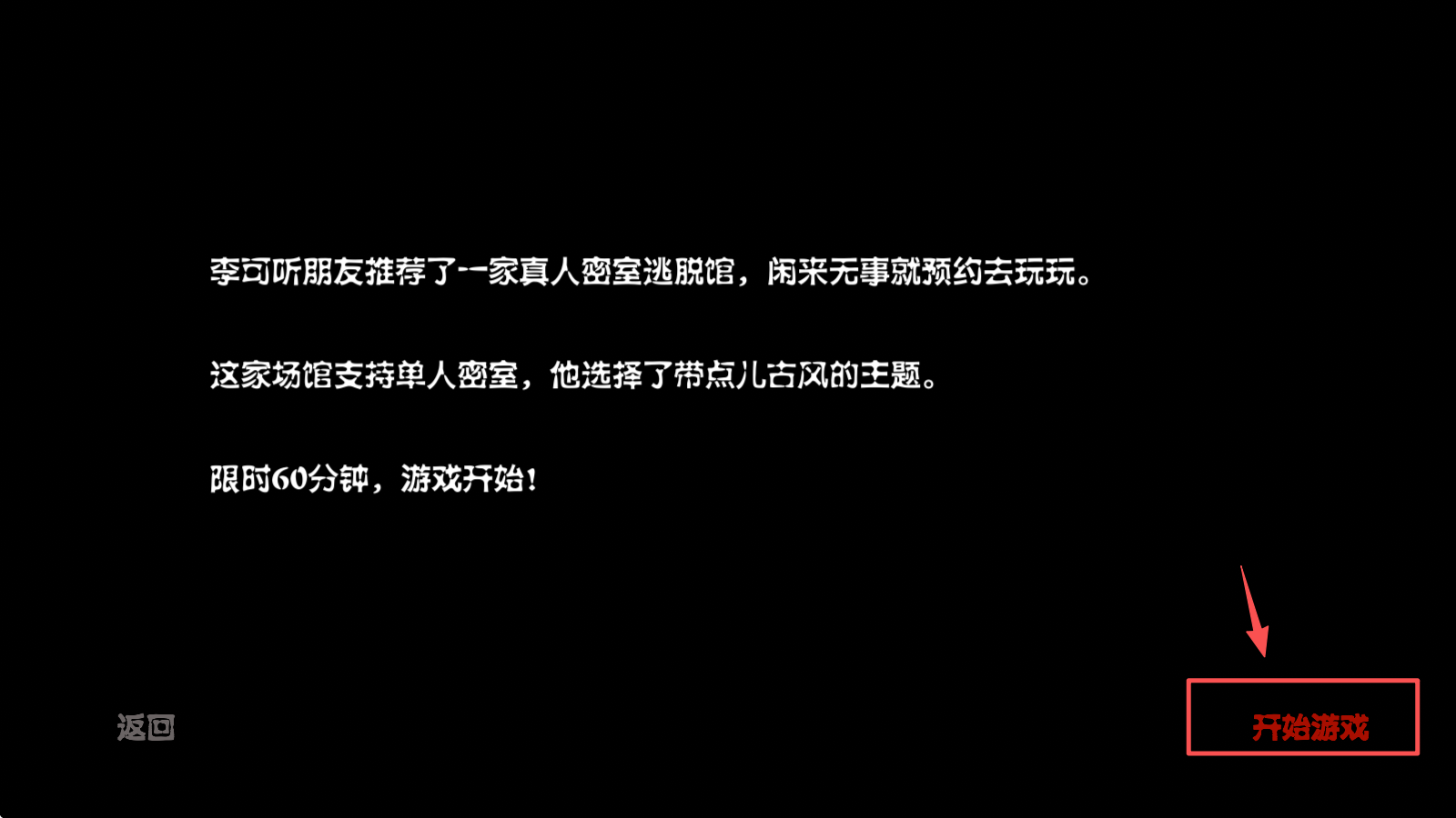 1、首先,点击“开始游戏”按钮进入游戏,开始你的密室逃脱挑战。