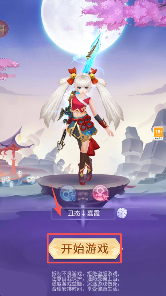 1、创建角色。选择性别和昵称,点击“开始游戏”按钮进入游戏。