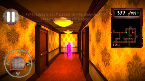 2、观察并收集宝石。在走廊中寻找发光的紫色物体,那是你需要收集的宝石。