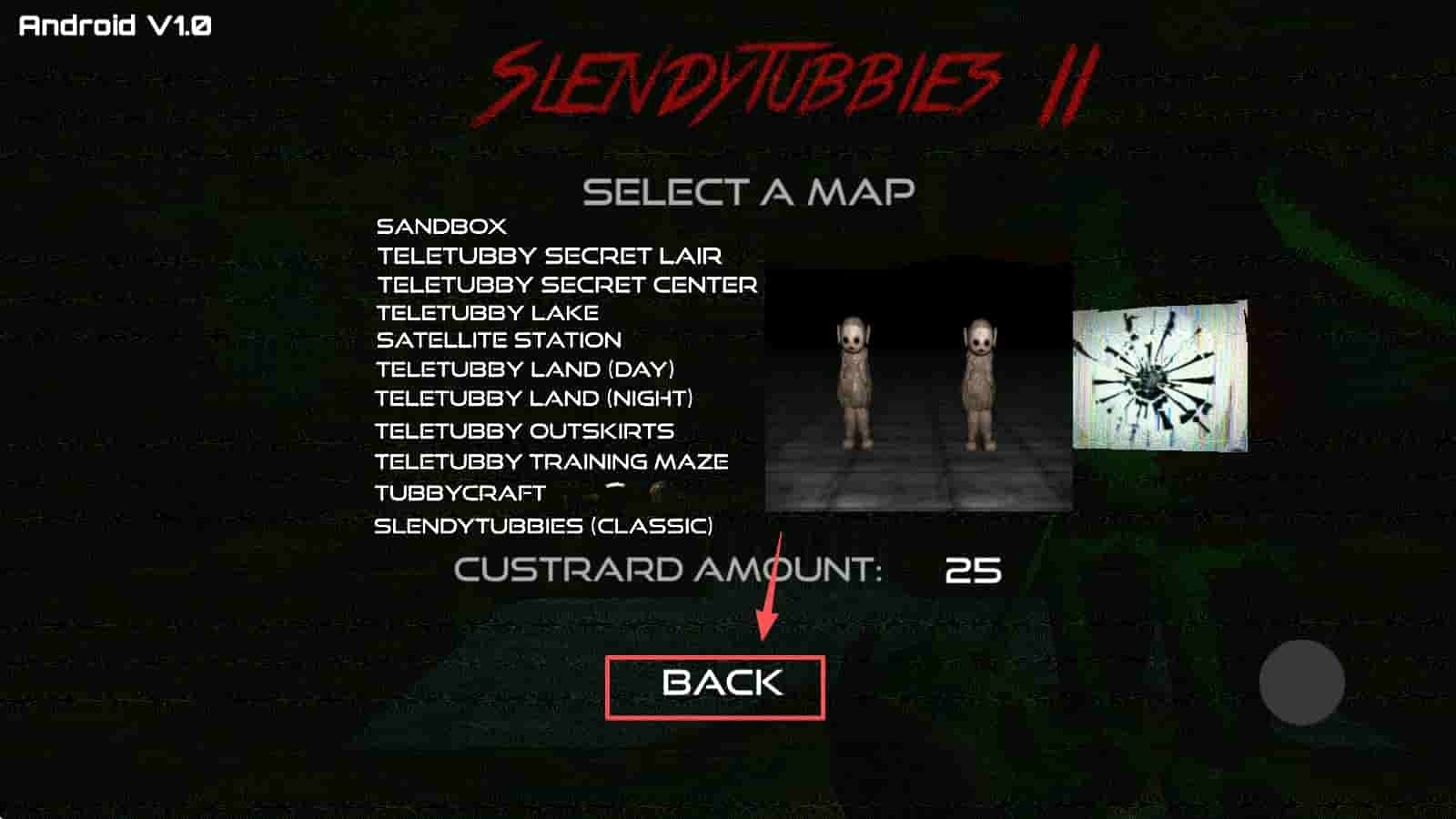 2、选择游戏地图。在地图选择界面,选择你想要进行的地图,然后点击“BACK”确认选择。