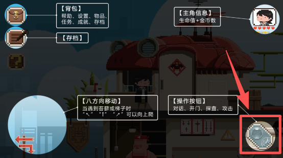 3、使用八方向移动键和操作按钮,控制角色移动和互动。