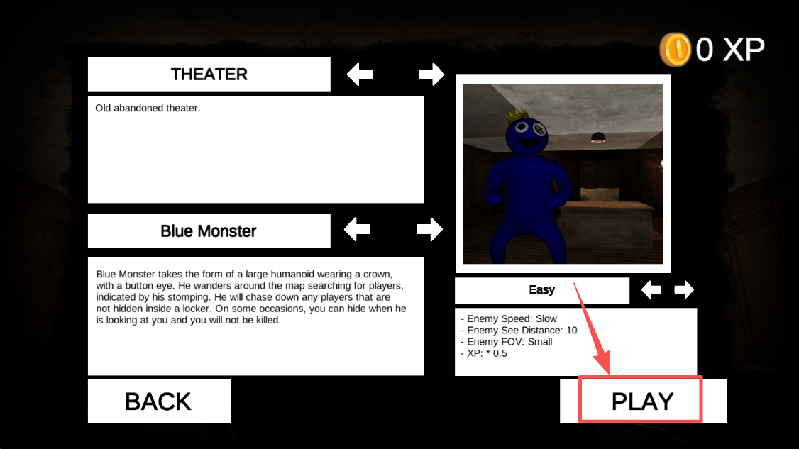 2、选择难度等级和角色,点击“PLAY”开始游戏,体验不同难度的逃脱。