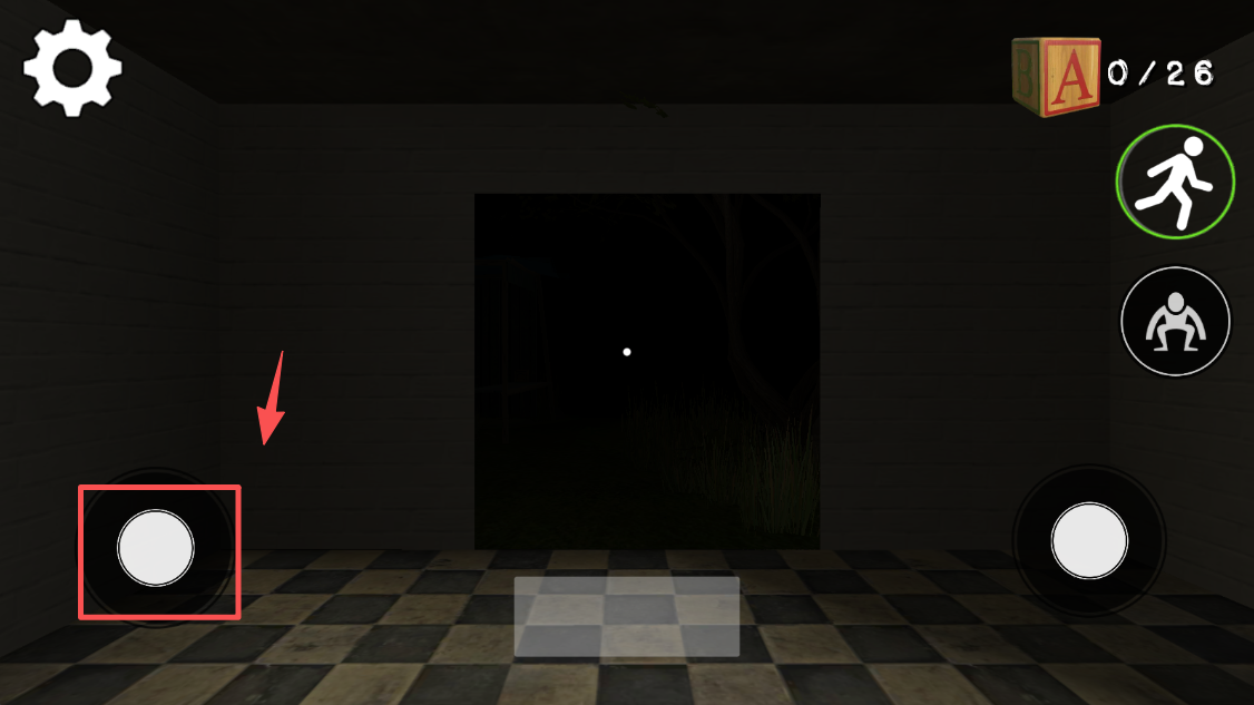 4、使用虚拟摇杆控制角色移动,探索房间,寻找线索和道具。