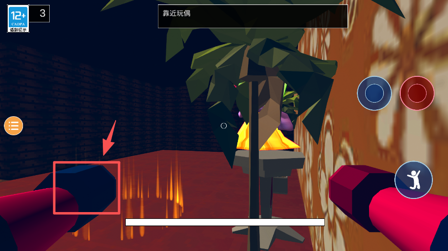 2、利用屏幕上的虚拟摇杆和跳跃按钮,控制角色移动和跳跃,探索环境。