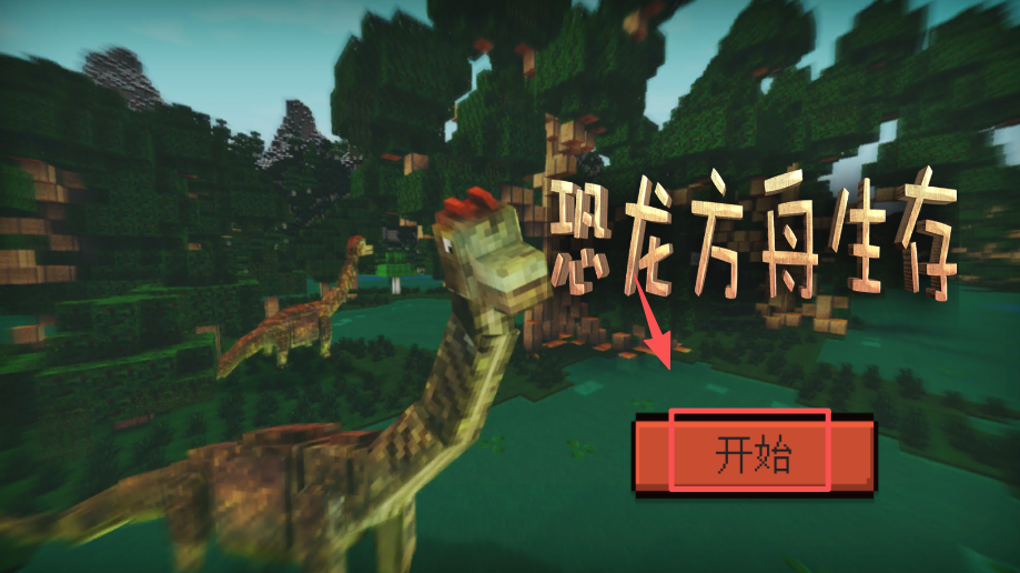 1、在游戏启动界面,点击红色的 “开始” 按钮,进入恐龙方舟生存模式。
