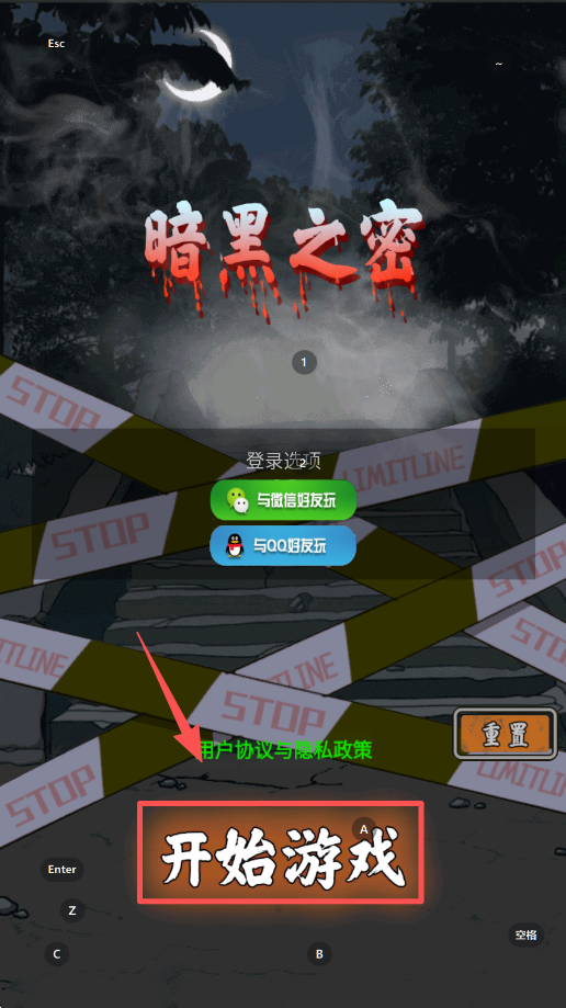 1、点击“开始游戏”按钮,进入游戏,开始你的冒险旅程。