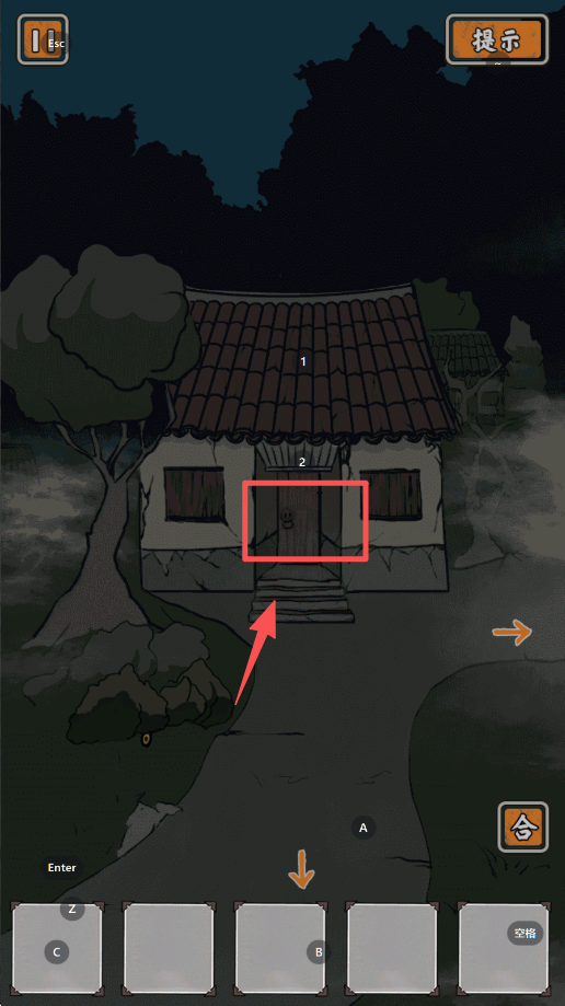 3、观察场景,点击门进入,开始探索和解谜。