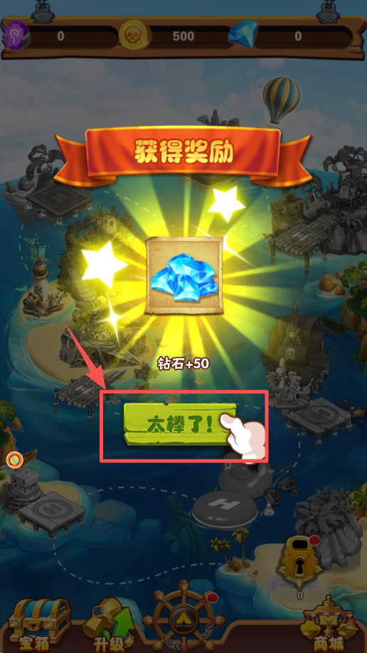 1、点击“太棒了!”按钮,领取钻石奖励,增加你的游戏资源。
