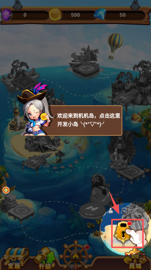 2、点击岛屿上的图标,开发小岛,开始你的海岛探险之旅。