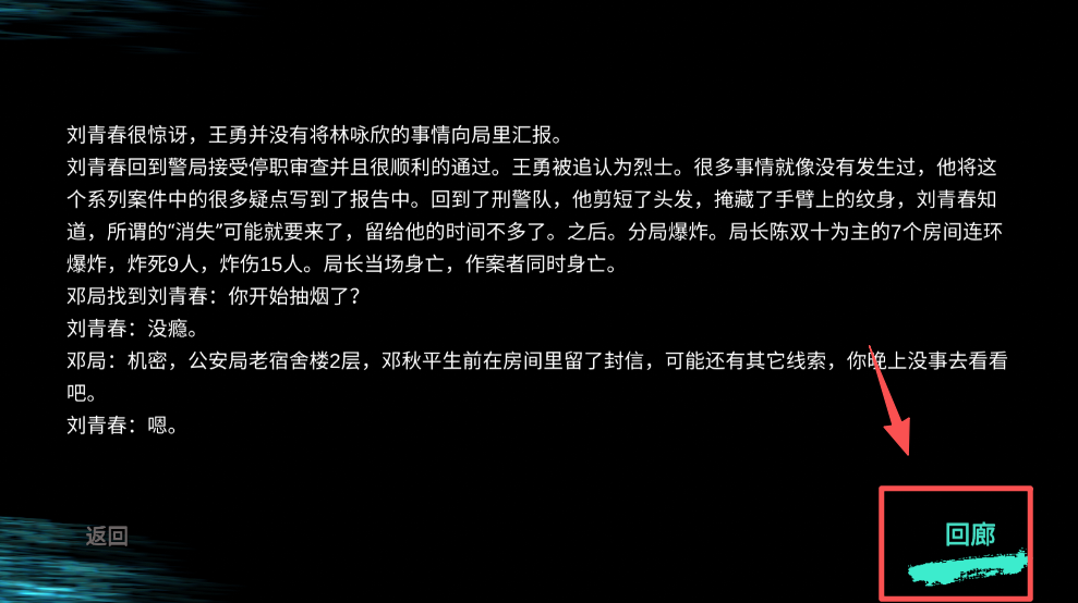 2、阅读案件背景剧情后,点击 “回廊” 按钮,进入公安局老宿舍楼的调查场景。