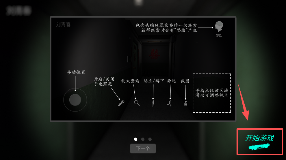 3、查看操作指引界面的功能说明后,点击 “开始游戏” 按钮,进入实际调查环节。