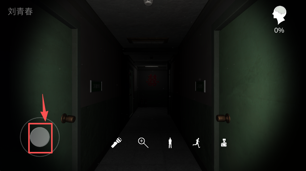 4、使用左侧的移动按钮,操控角色在宿舍楼回廊内移动,开始探索场景收集线索。
