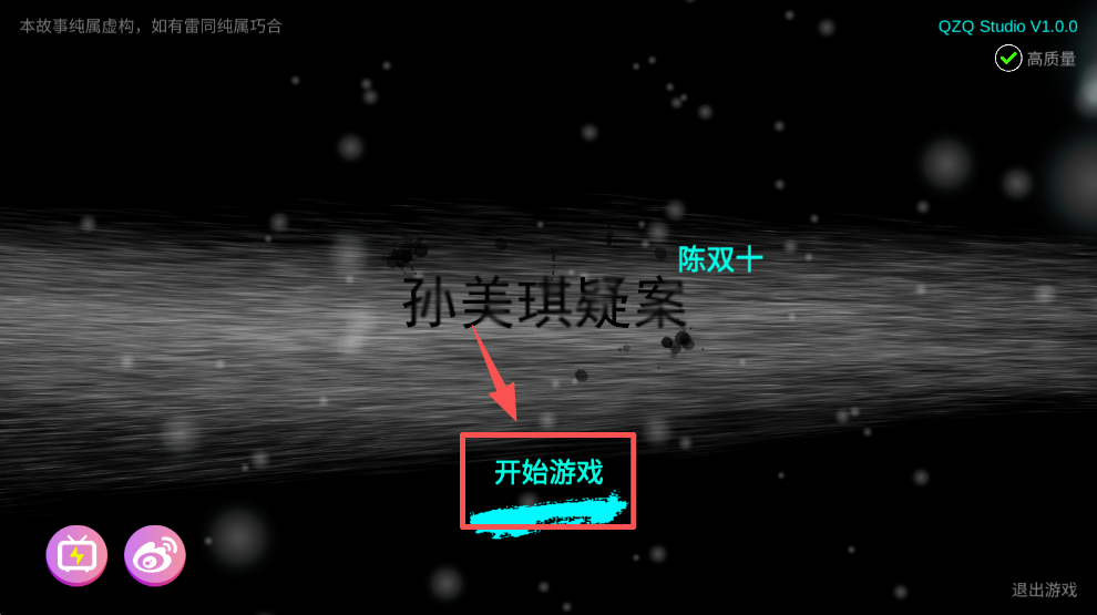 1、在游戏启动界面,点击 “开始游戏” 按钮,进入孙美琪疑案陈双十的剧情流程。