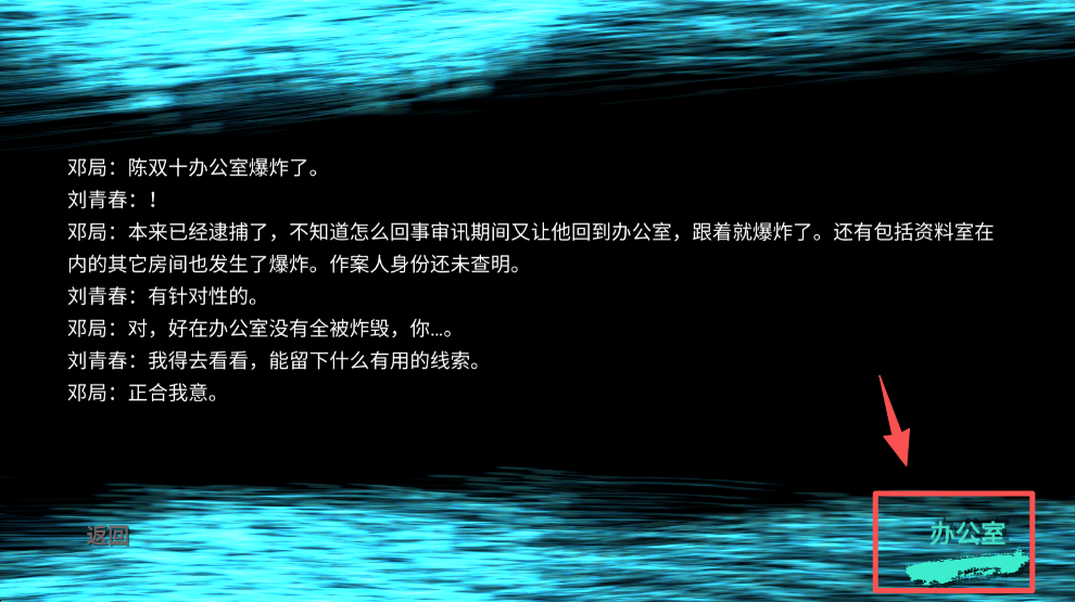 2、阅读案件背景对话后,点击 “办公室” 按钮,进入陈双十的办公室调查场景。