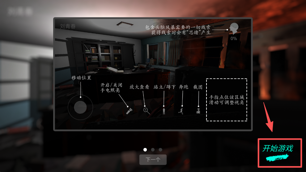 3、查看操作指引界面的功能说明后,点击 “开始游戏” 按钮,进入实际调查环节。