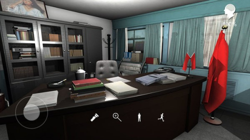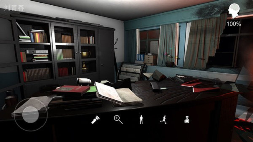 4、使用左侧的移动按钮,操控角色在办公室内移动,开始探索现场收集线索。