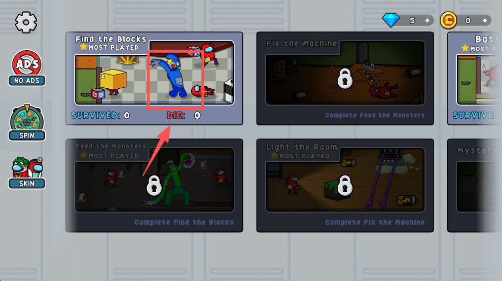 2、选择一个挑战开始游戏,点击“Find the Blocks”等选项,进入游戏模式。