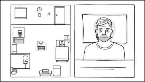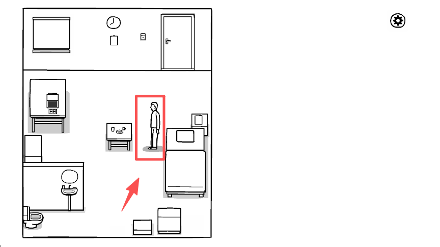 3、点击房间内的箭头,移动角色至不同场景,探索并寻找解谜线索。