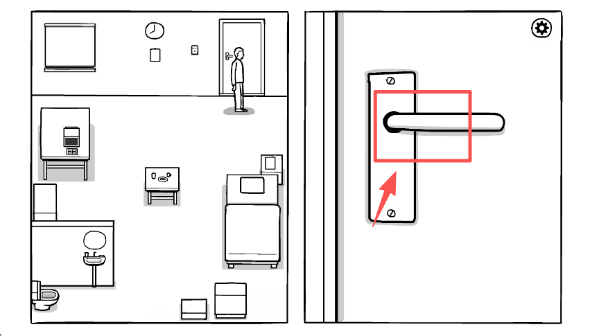 4、点击门把手,尝试打开门,继续游戏进程,寻找更多线索。