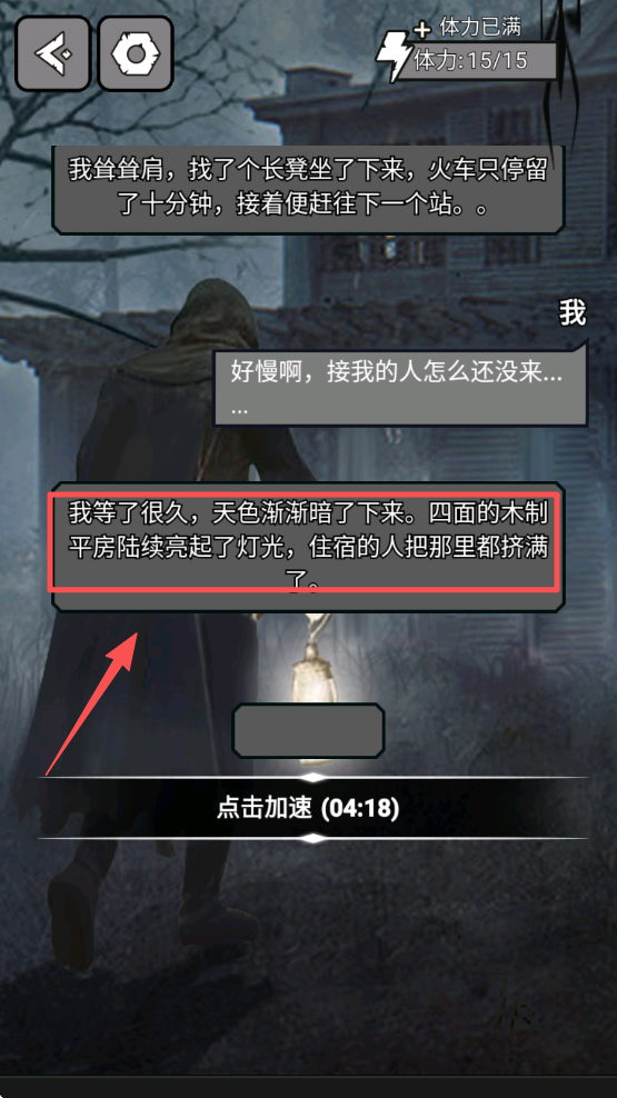 2、点击“点击加速”按钮,可以跳过等待时间,快速进入下一场景。