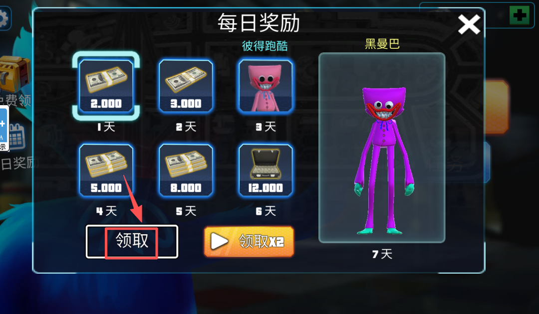 1、点击“领取”按钮,获取对应天数的奖励,增加游戏内货币。