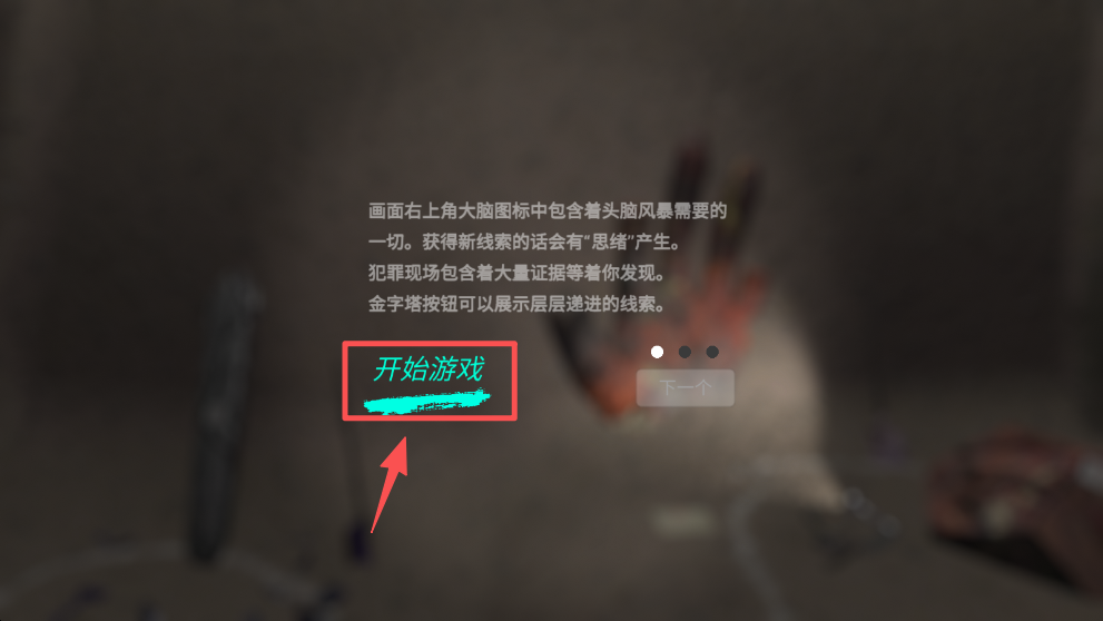 3、然后,再次点击“开始游戏”按钮,进入游戏教程,学习如何收集线索和证据。
