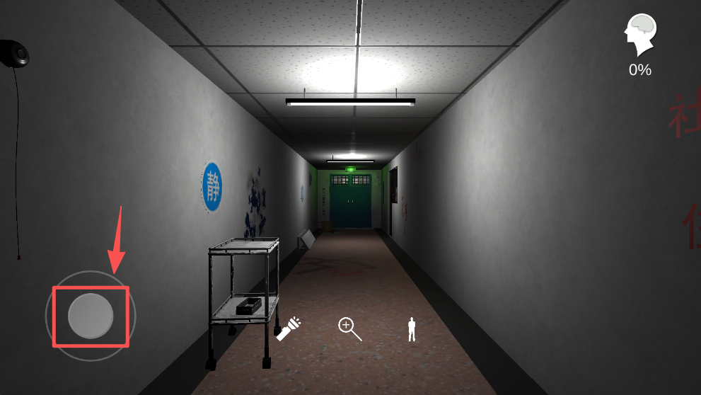 4、操控左下角的移动按钮,可在案发现场的走廊中移动角色,开始探索线索。