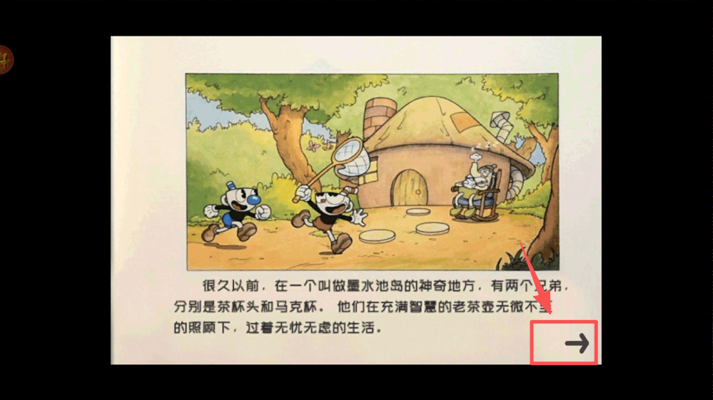 2、点击箭头按钮,跳过剧情文本,推进到游戏场景。
