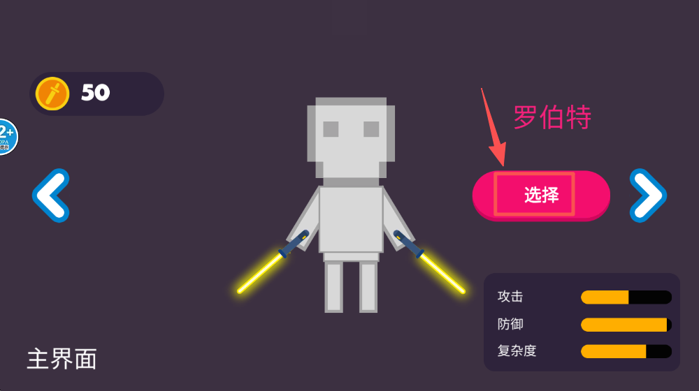 3、点击 “选择” 按钮,确定使用 “罗伯特” 角色进行挑战。