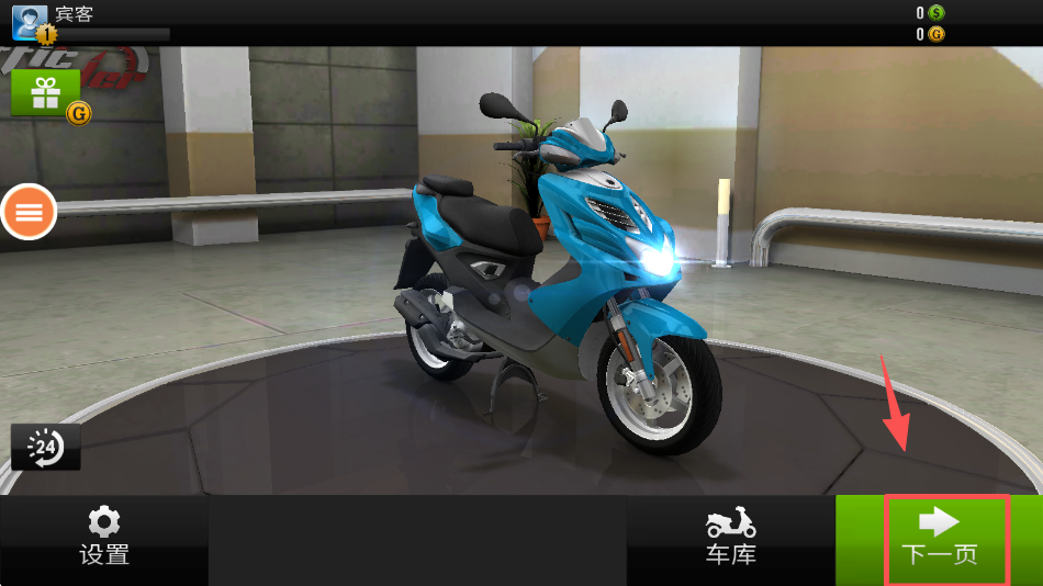 3、点击 “开始游戏” 按钮,进入摩托驾驶的实际挑战关卡。