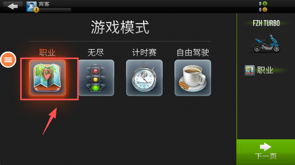 1、点击 “下一页” 按钮,进入游戏的模式选择界面。